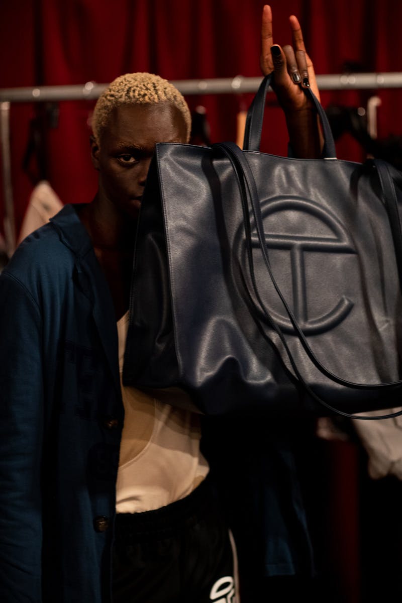 Telfar has moved on from New York and brought its SS20 collection to Paris Fashion Week. Models walked in the new collection in front of a screening of The World Isn't Everything, a film brand founder Telfar Clemens collaborated on with Ashton Sanders, Petra Collins, and playwright Jeremy O. Harris. When a character came on screen, the model would walk down the runway in the very same look.