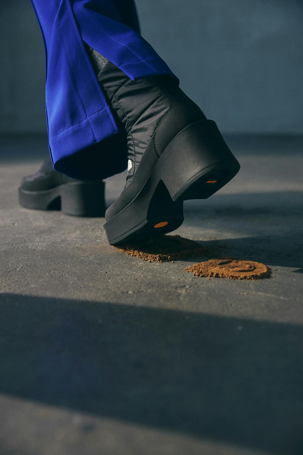 Elsewhere, there is also a tall boot made from Dyneema, the ultra-strong fabric used by cutting-edge footwear labels like Norda, and a convertible boot that can turn into a mule with the swift unzipping of its puffy shaft.
