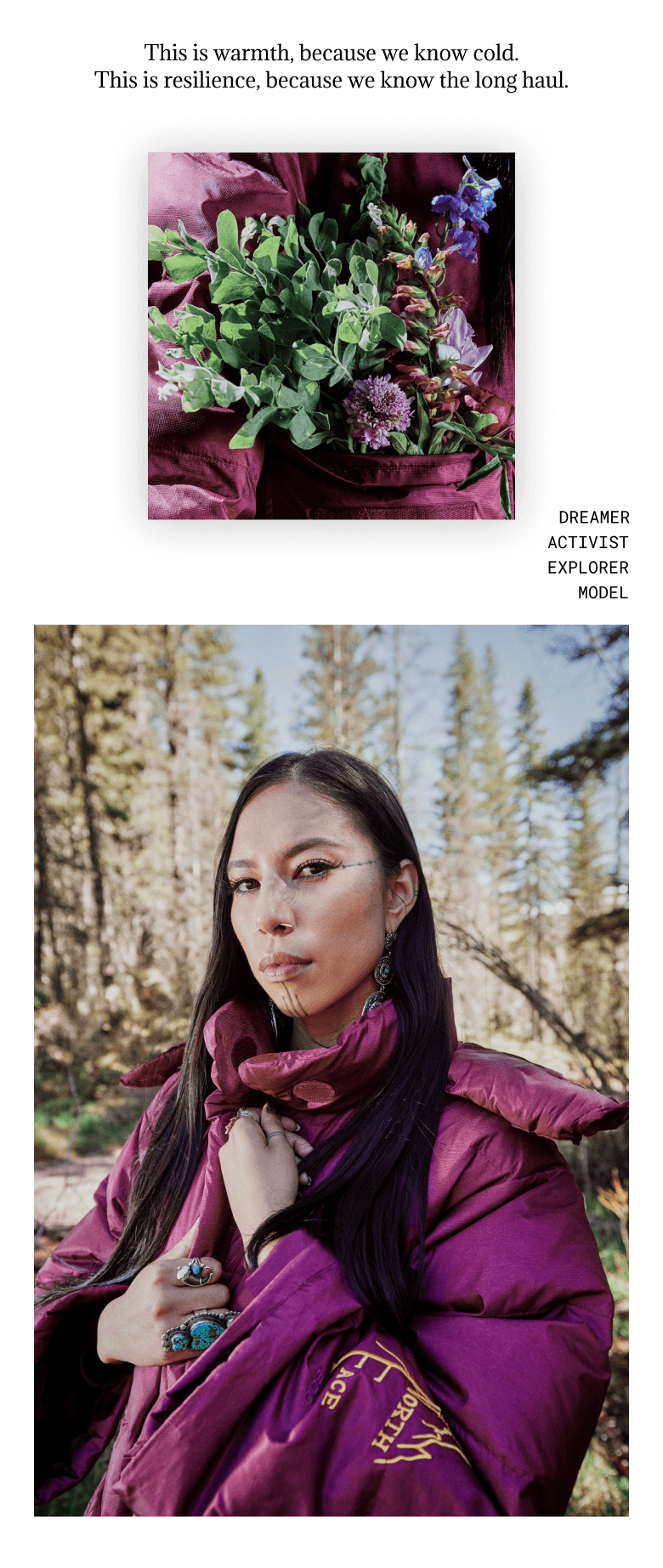 When I was a kid living in rural Alaska with my family, my mom always made sure we had good gear to keep us warm. I usually had hand-me-downs from my brothers, but they were the best and most reliable. As I grew older, I became more involved in advocacy work within my community, bringing awareness to interconnected issues such as the climate crisis and oil and gas development. I went to Washington, D.C., on behalf of my people, and that’s where I met The North Face team.