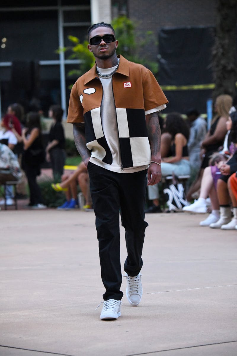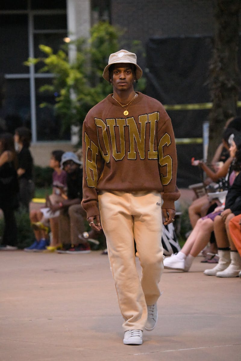 The college style evolution was made crystal clear throughout the show, which kicked off with a TIER Hounds hoodie and shorts 'fit and concluded with chic evening dresses.