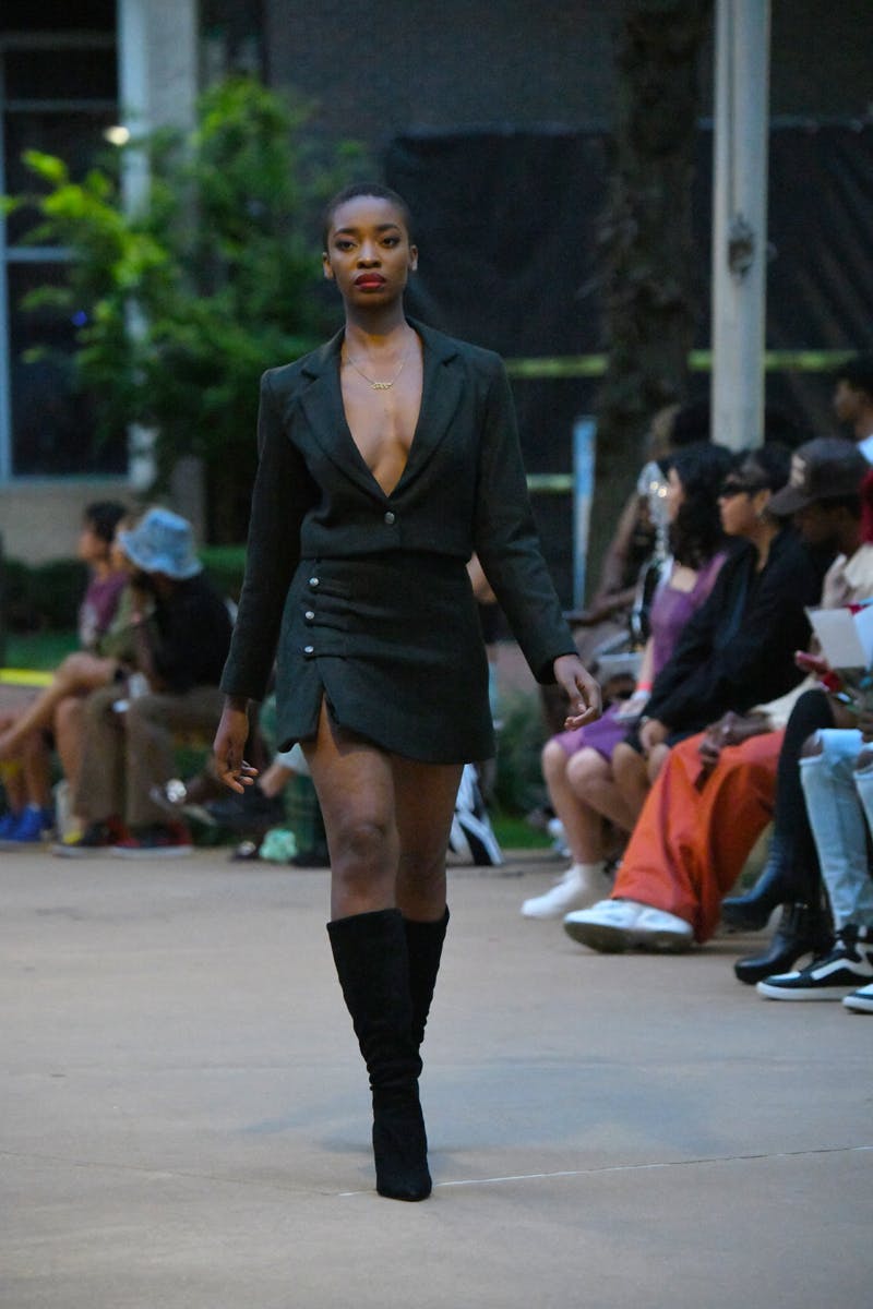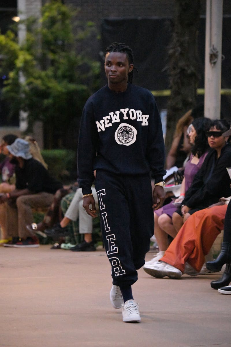 That's right. TIER staged its SS23 collection right on the grounds of LIU Brooklyn, turning the private university's main lawn into a catwalk. A few curious LIU students passed by, trying to get a glimpse at the fashion production plopped in the middle of their campus.