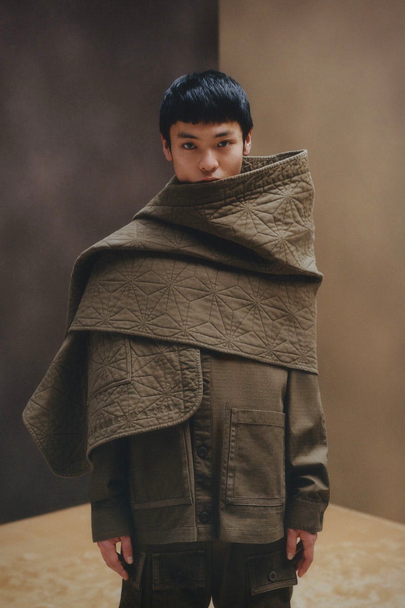 Building a full uniformed look (something that it's assumed will be offered by each of the six designers involved in the Future73 project), Chen delivers a Kimono Chore Coat, Quilted Vest, Cargo Pants, Overshirt, Pullover Hoodie, Tee, and Quilted Wrap.