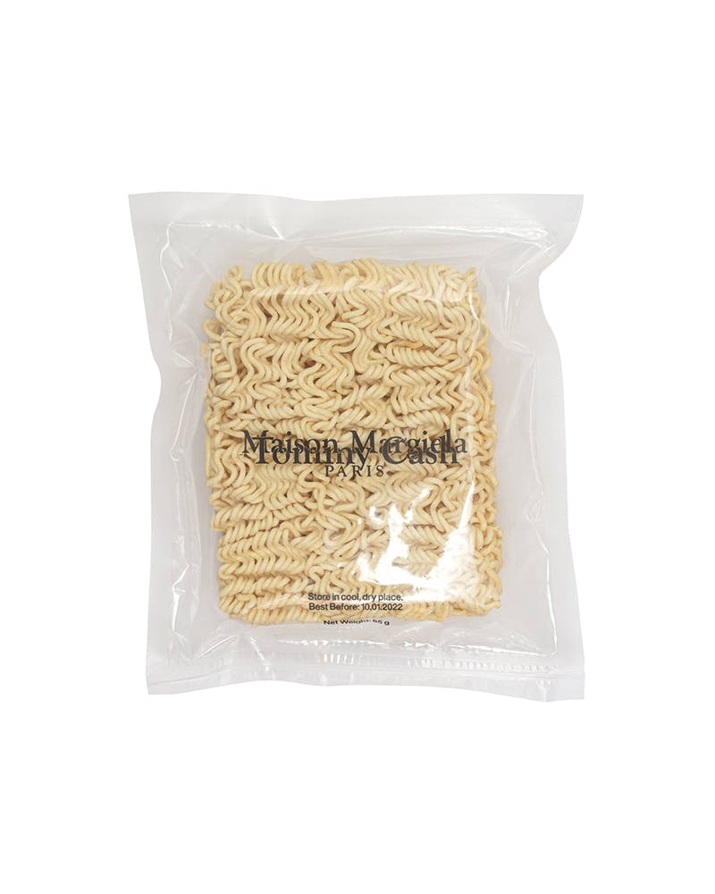Here, that consuming critique is taken pretty literally; the capsule features a pair of €95 bread slippers aka "loafers." (Although arguably, a stronger critique wouldn't include dropping any new product, but alas.) There's also a €12 "luxury ramen" pack that, despite having cooking instructions on the reverse, features a note that essentially says only eat if you're willing to perish as a consequence.