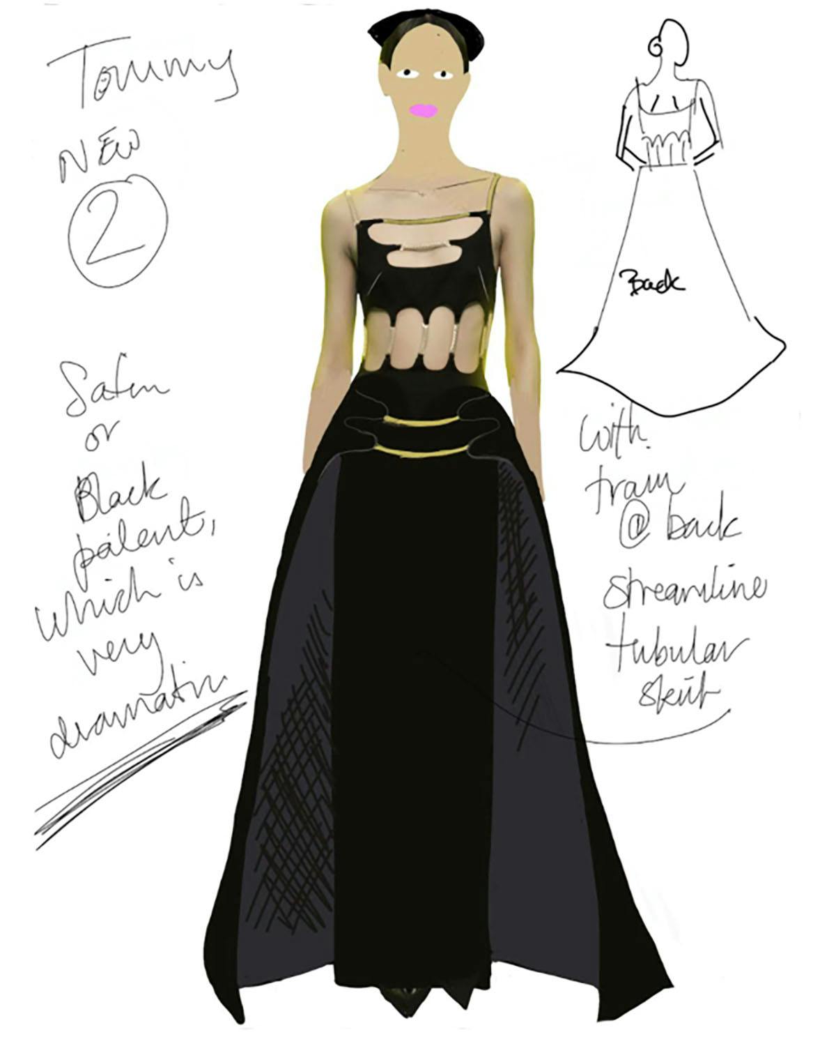 Designed by Christopher Kane and styled by Taylor Angino, Dorfman's phthalo green gown is a cerebral yet sexy interpretation of the night's theme, Gilded Glamour. Neither overly obvious nor esoteric, the look is totally Tommy: sexy, playful, unexpected.