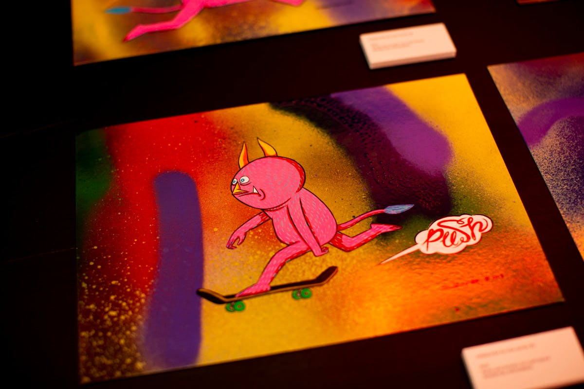 Despite what the artists have in common, each uses a different artistic technique, so expect digital drawings, spray paintings, and illustrative prints that draw upon traditional East Asian motifs, with abstract alien figures thrown in for good measure. Dragons, tigers, and demons crop up throughout, with each artist tapping into the unspoken cultural connection that binds them using humor, bold splashes of color, and a street art vibe.