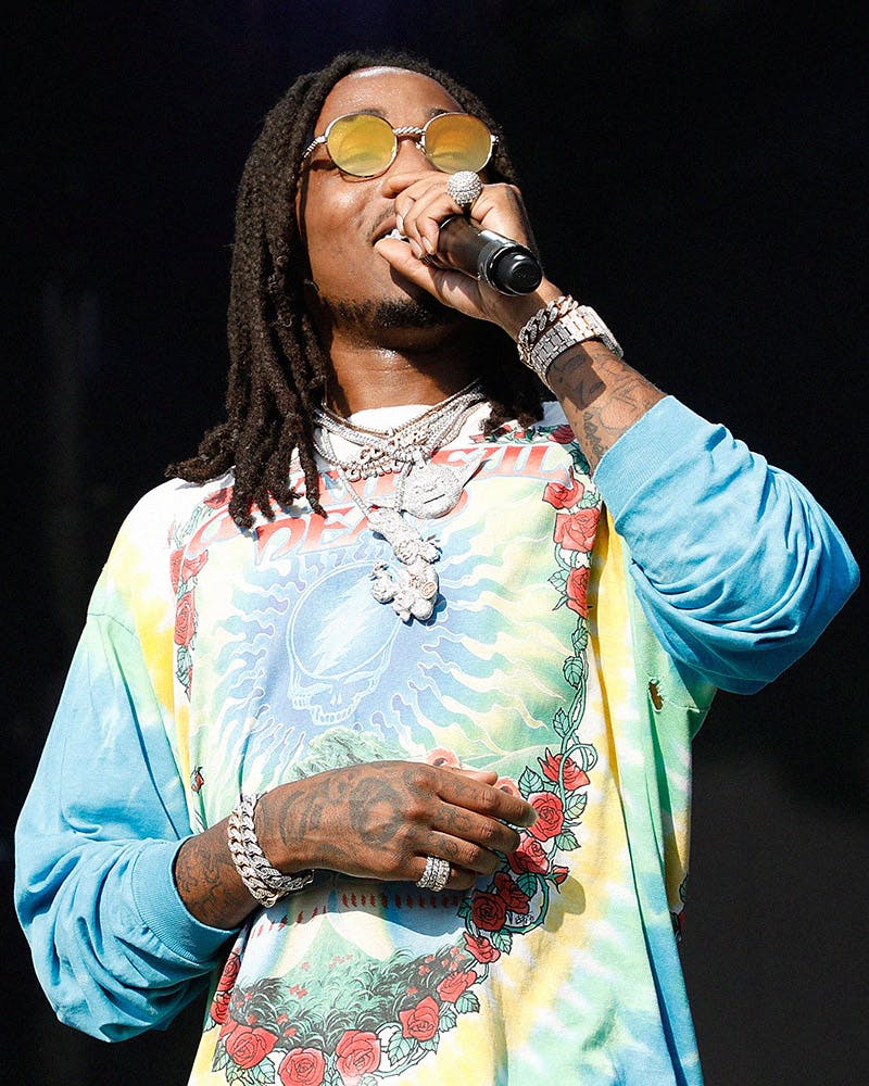 In fact, the last few years of music have been largely dominated by hip-hop. It’s debatable that artists including Lil Wayne, Kanye, and Travis Scott are essentially the stadium rock stars of today; they pack arenas and attract the same frenzied reception that rock bands (and then metal bands, and then pop bands) have attracted in the past. Their influence is written across fashion, too: from Migos’ "Versace" to Kanye’s own Virgil Abloh taking the helm at Louis Vuitton's menswear, rappers are ruling the industry and building close relationships with iconic brands and designers. As such, it makes sense that they’re also killing the merch game.