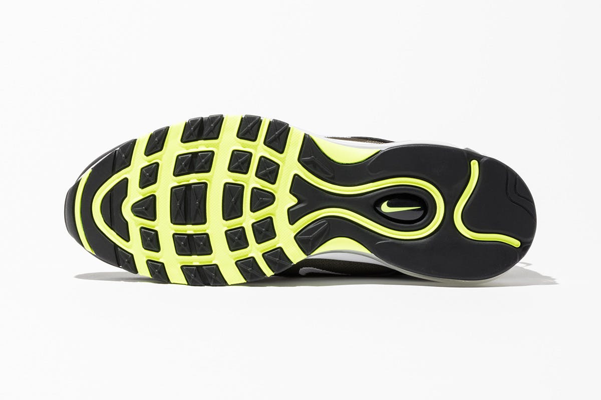 Editor’s Notes: UNDEFEATED and Nike are following up their highly-popular Air Max 97 collaboration from 2017 with two new colorways of the same sneaker. The first is a predominantly black colorway with hits of volt and olive, while the second is an olive colorway with hits of orange, black, and reflective 3M branding.