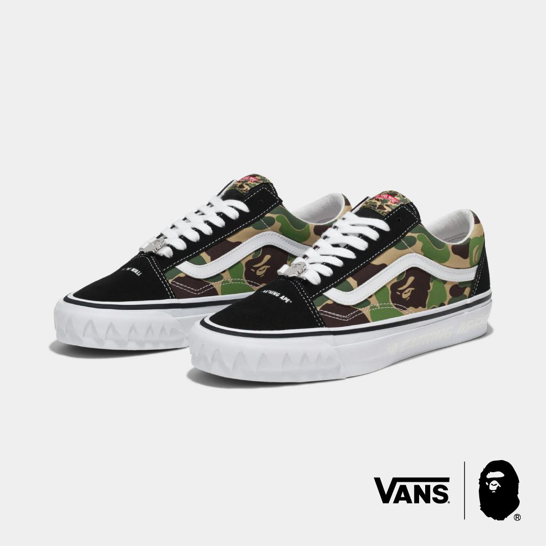 Think of something synonymous with Vans and you’ll likely picture the SoCal Skatewear label’s OG shoes: the Old Skool and Sk8-Mid. Think of something synonymous with BAPE and you’ll likely picture the Japanese streetwear label’s archetypal Cloud Camo print. But what about the two together? Well, look no further.