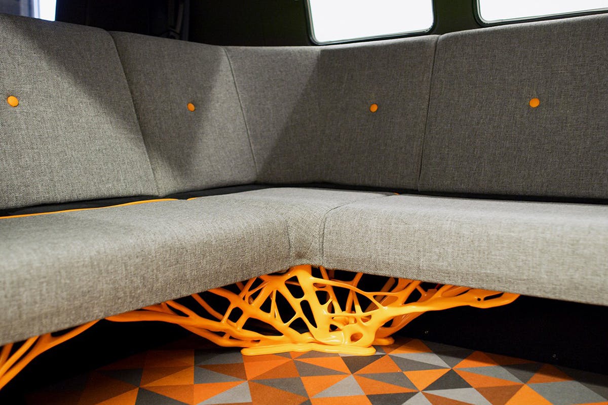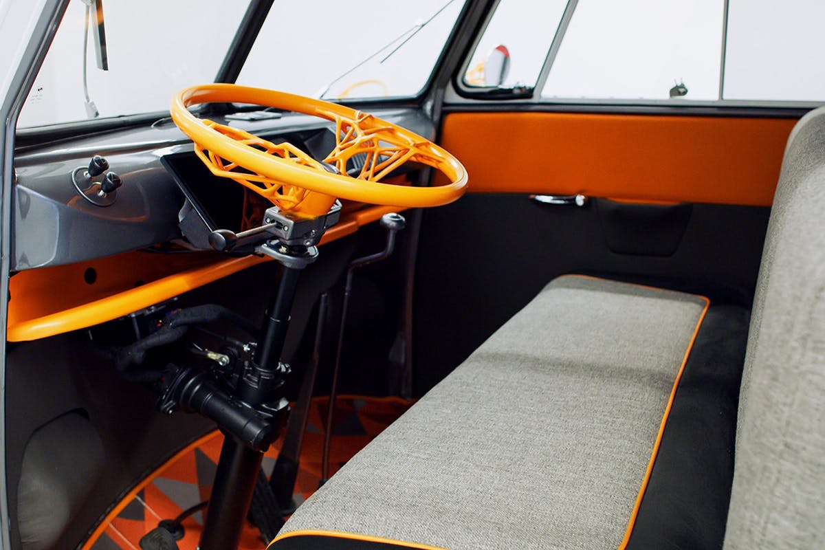 Volkswagen’s Type 20 camper van runs on an electric motor that delivers 120bhp and 173lb-ft of torque, while the Type 2, on the other hand, was equipped with a sub-50bhp engine. The ride has a 10kWh battery and a 2,500-watt onboard charger. Porsche has added to the concept with a custom-built active pneumatic suspension that elevates digitally as the driver nears the car. Additionally, the rims, steering wheel, and wired rearview mirror support come courtesy of multinational software company Autodesk.