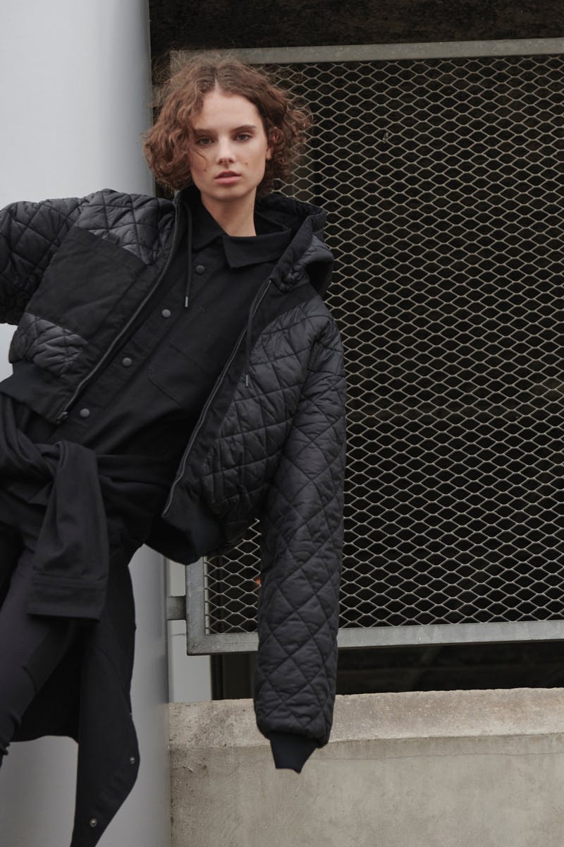 Instead, WARDROBE.NYC created its own silhouettes — insulated parkas fitted with diamond quilting, down-filled reversible bombers, jersey leggings fitted with pockets made of Carhartt's signature Dearborn Canvas — realized them in all-black, aside from a single white tee.