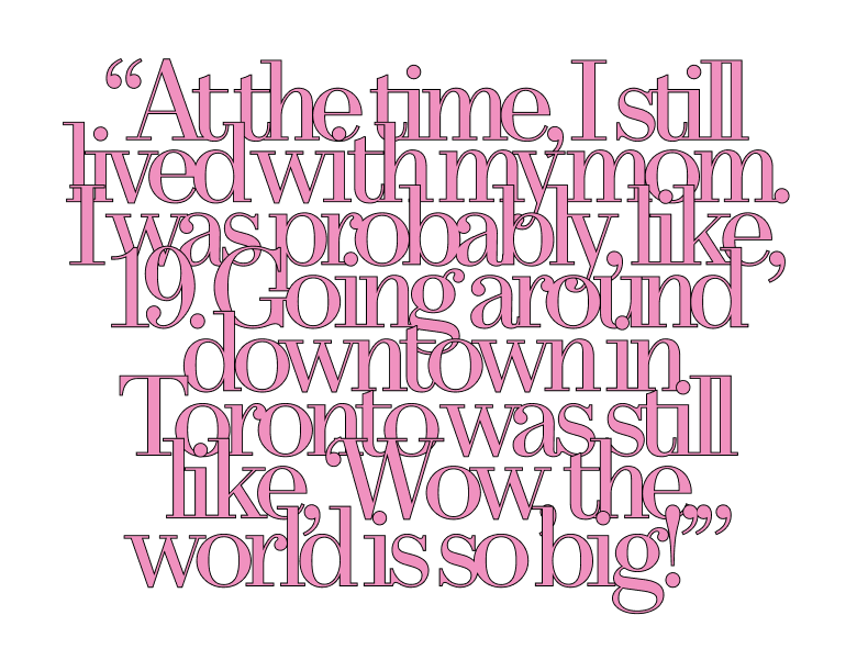 co-stars, confirming that wins and losses didn’t really matter much.The model remembers those early jobs being quite “scary,” noting how strange it felt to be launched from a sheltered Canadian upbringing straight into the fast-paced life of an international model. “At the time, I still lived with my mom. I was probably, like, 19. Going around downtown in Toronto was still like, ‘Wow, the world is so big!’” she recalls with a chuckle. “So taking flights everywhere for jobs and being in new cities and stuff was so, so foreign. It was scary to just be going out into the world by yourself and trying to make something of yourself.”