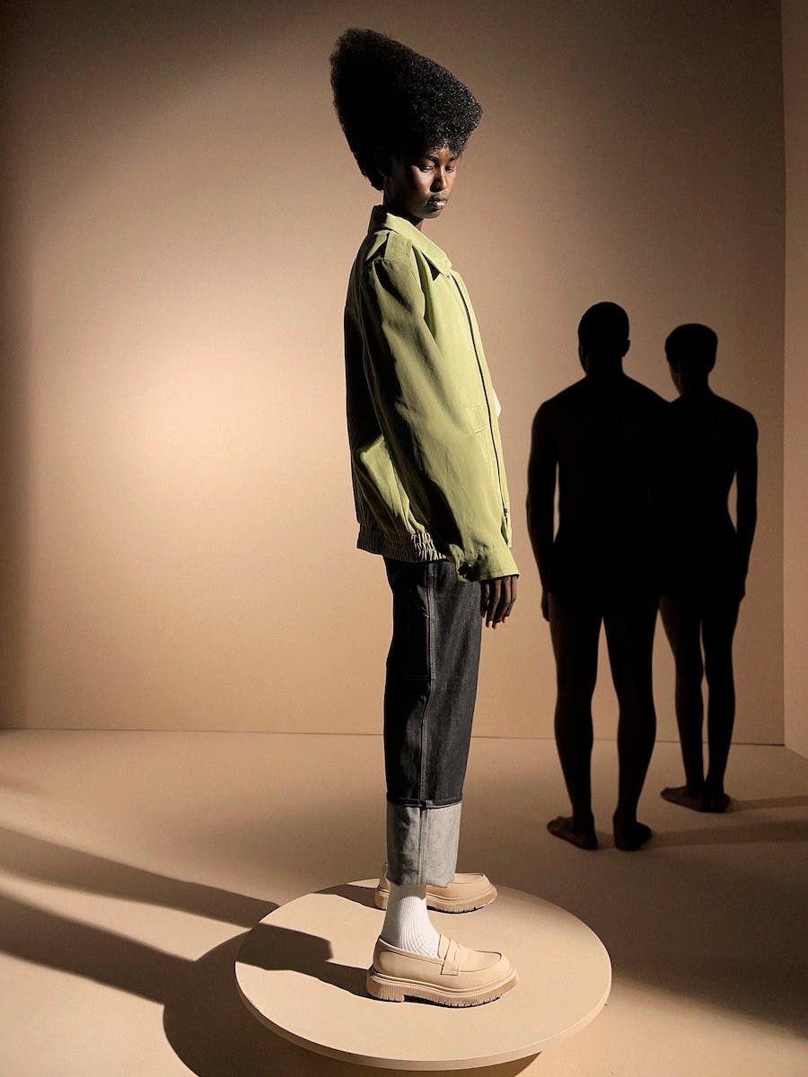 The resulting collection, which can be seen in the gallery above, was "incepted and designed in Saly, Senegal where I spent two months immersed in the culture and connected with the people," according to a statement by Balogun. "A Shadow Of My Former Self represents the dynamic change and metamorphosis that followed."