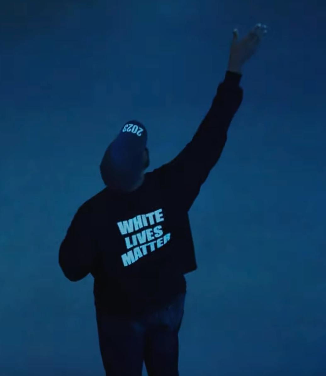 However, I can't imagine anyone was paying much attention once they saw the giant "WHITE LIVES MATTER" text printed on the back of his black T-shirt.