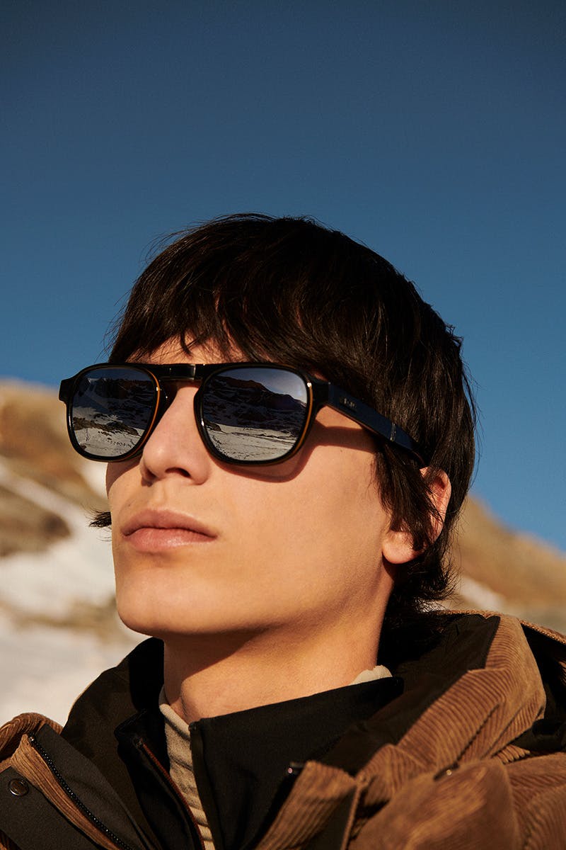 Designed to perform in every weather condition, Luce’s lenses are finished with a special coating that repels water droplets, oil, and impurities (which reduce visual quality) and makes them easier to clean. The frames are custom-made using a special type of acetate that comes from renewable sources and is produced by Mazzucchelli exclusively for Zegna. Wrapping around the tips is the collection’s signature double-stripe Vicuña-colored graphic, which is inspired by a 26km road paved in the 1930s that connects Oasi Zegna to local communities.