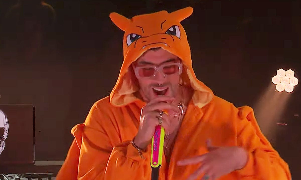 Watch Bad Bunny Perform 'Pero Ya No' in a Giant Pokémon Onesie